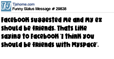 X says facebook suggested me and my ex should be friends. Thats like saying to Facebook 'I think you should be friends with Myspace'.
