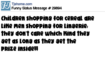 X children shopping for cereal are like men shopping for lingerie; they don't care which kind they get as long as they get the prize inside!!
