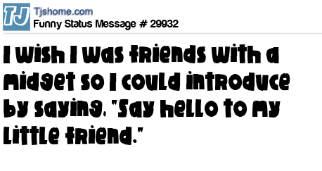 X I wish I was friends with a midget so I could introduce by saying, "Say hello to my little friend."