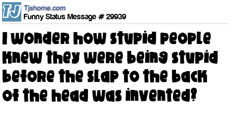 - # 210869 Have you ever wondered how stupid people knew they were being stupid before the slap to the back of the head was invented?