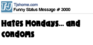 - # 33033 waiting for the boring weekly "hating mondays" statuses...btw, I'm gathering mondays to throw at you!