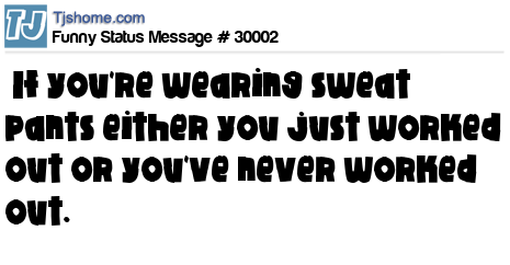 - # 29931 If you're wearing sweat pants either you just worked out or you've never worked out.