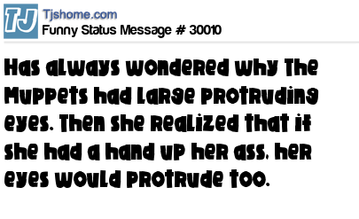 - # 30649 Wondering why The Muppets have large protruding eyes. But then again, I realised that if I had a hand up my bum, my eyes would probably protrude too.