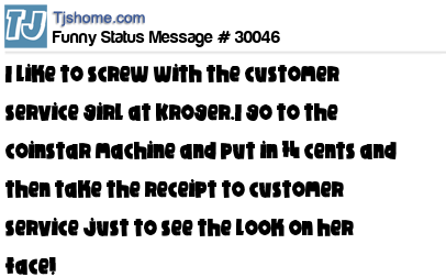 X is I like to screw with the customer service girl at Kroger.I go to the coinstar machine and put in 74 cents and then take the receipt to customer service just to see the look on her face!