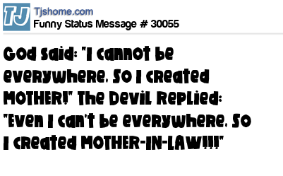 X  God said: "I cannot be everywhere, So I created MOTHER!" The Devil Replied: "Even I can't be everywhere, So I created MOTHER-IN-LAW!!!"