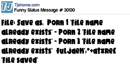 X File: Save as, Porn 1 'File name already exists' - Porn 2 'File name already exists' - Porn 3 'File name already exists' fuljaek';*+atxre£ 'File saved'
