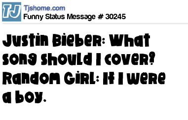 X Justin Bieber: What song should I cover? Random Girl: If I were a boy.