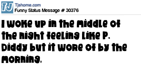 X I woke up in the middle of the night feeling like P. Diddy but it wore of by the morning,