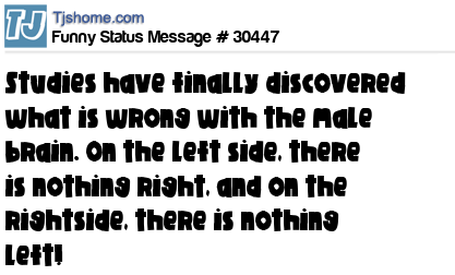 X Studies have finally discovered what is wrong with the male brain. On the left side, there is nothing right, and on the rightside, there is nothing left!