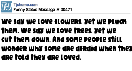 X We say we love flowers, yet we pluck them. We say we love trees, yet we cut them down. And some people still wonder why some are afraid when they are told they are loved.
