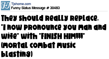 - # 53913 Thinks they should change "I now pronounce you man and wife" to FINISH HIM!!!