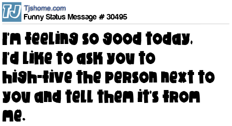 - # 34900 feeling so good today. High-five the person next to you and tell them it's from me.
