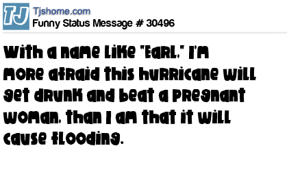 X With a name like "Earl," I'm more afraid this hurricane will get drunk and beat a pregnant woman, than I am that it will cause flooding.
