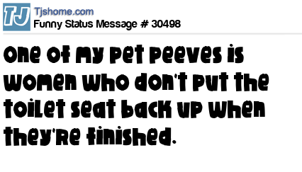 X One of my pet peeves is women who don't put the toilet seat back up when they're finished.