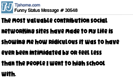 X The most valuable contribution social networking sites have made to my life is showing me how ridiculous it was to have ever been intimidated by or feel less than the people I went to high school with.