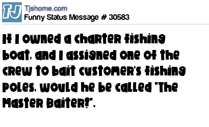 - # 121432 I think this buddy of mine is becoming really good at fishing coz all his neighbors call him a MASTER BAITER!....bravo buddy!