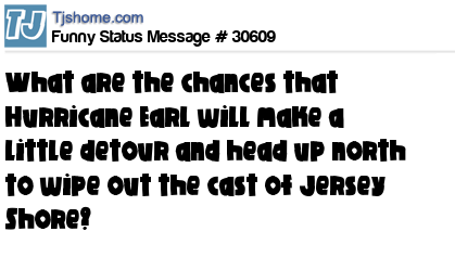 - # 68690 May the force of Hurricane Irene wipe out the entire "Jersey Shore" cast. Lord, hear our prayer!