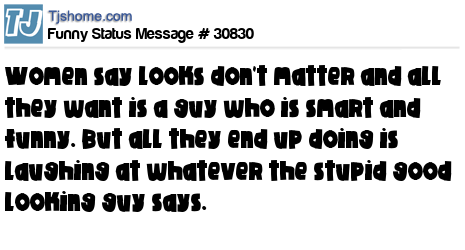 X says Women say looks don't matter and all they want is a guy who is smart and funny. But all they end up doing is laughing at whatever the stupid good looking guy says.