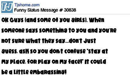 X is OK Guys (and some of you girls). When someone says something to you and you're not sure what they say...don't just guess, ask so you don;t confuse "stay at my place, for play on my face!" It could be a little embarassing!