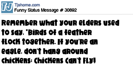 X Remember what your elders used to say, "Birds of a feather flock together. If you're an eagle, don't hang around chickens: Chickens Can't Fly!