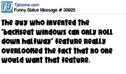 X The guy who invented the "backseat windows can only roll down halfway" feature really overlooked the fact that no one would want that feature.