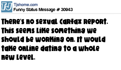 X There's no sexual Carfax report. This seems like something we should be working on. It would take online dating to a whole new level.