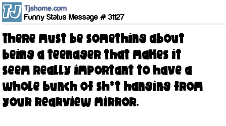 X  There must be something about being a teenager that makes it seem really important to have a whole bunch of sh*t hanging from your rearview mirror.