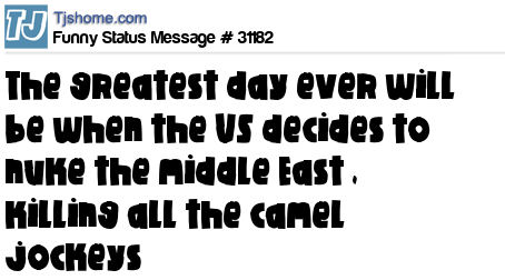 X is the greatest day ever will be when the US decides to nuke the middle East , killing all the camel jockeys
