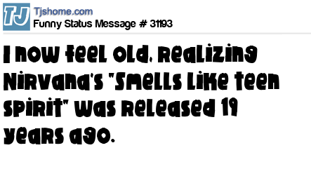 X I now feel old, realizing Nirvana's "Smells like teen spirit" was released 19 years ago.