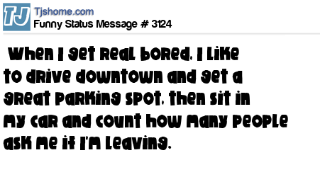 X When I get real bored, I like to drive downtown and get a great parking spot, then sit in my car and count how many people ask me if I'm leaving.