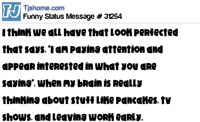 X I think we all have that look perfected that says, "I am paying attention and appear interested in what you are saying", when my brain is really thinking about stuff like pancakes, tv shows, and leaving work early.