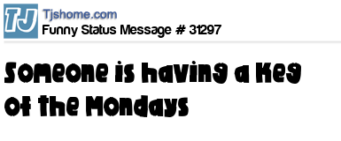 - # 33033 waiting for the boring weekly "hating mondays" statuses...btw, I'm gathering mondays to throw at you!