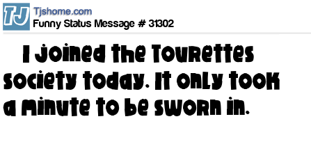 X I joined the Tourettes society today. It only took a minute to be sworn in.