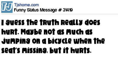 - # 69670 Truth hurts. Maybe not as much as jumping on a bicycle with a seat missing, but it hurts
