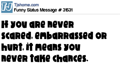 X If you are never scared, embarrassed or hurt, it means you never take chances.