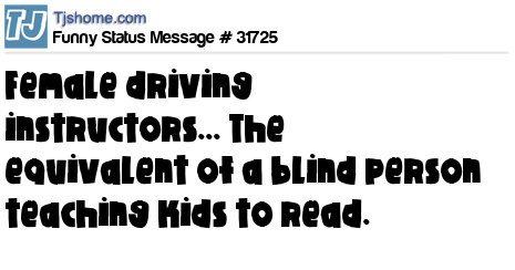 - # 31721 Female driving instructors... The equivalent of a blind person teaching kids to read.