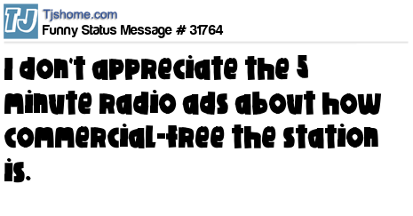 X I don't appreciate the 5 minute radio ads about how commercial-free the station is.