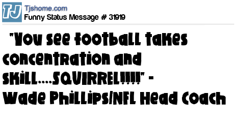X "You see football takes concentration and skill....SQUIRREL!!!!" - Wade Phillips/NFL Head Coach