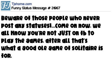X Beware of those people who never post any statuses!...Come on now, we all know you're not JUST on fb to play the games, after all that's what a good ole game of solitaire is for.