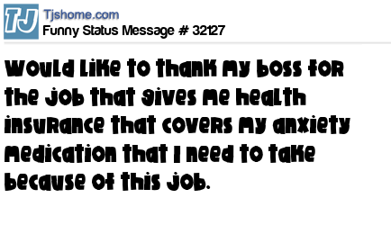X would like to thank my boss for the job that gives me health insurance that covers my anxiety medication that I need to take because of this job.