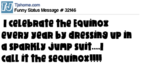 X   I celebrate the Equinox every year by dressing up in a sparkly jump suit....I call it the sequinox!!!!