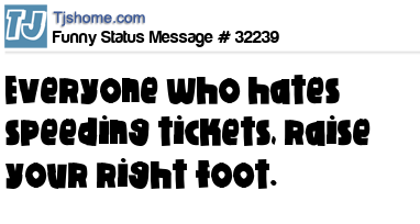 - # 34885 Everyone who hates speeding tickets, raise your right foot.