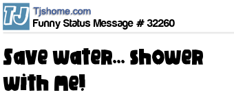 - # 27549 We have a huge water crisis here! So I'm trying to make the biggest effort that I can to help conserve. With that said, I'm about to take a shower, if any ladies would like to join me then by all means come on in, we must save our precious h2o. HA! =p