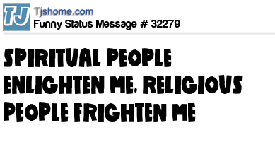 X is SPIRITUAL PEOPLE ENLIGHTEN ME, RELIGIOUS PEOPLE FRIGHTEN ME