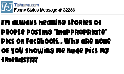 X is I'm always hearing stories of people posting "Inappropriate" pics on Facebook....Why are none of YOU showing me nude pics my friends????