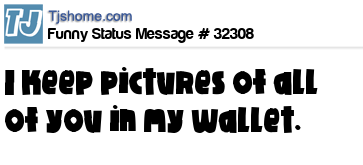 - # 70151 I like to keep a picture of myself in my wallet so when people show me pictures of their kids I can show them a pic of me not giving a sh!t.