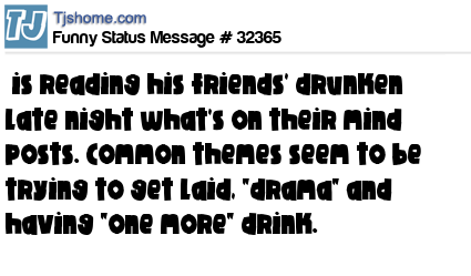 X is is reading his friends' drunken late night what's on their mind posts. Common themes seem to be trying to get laid, "drama" and having "one more" drink.