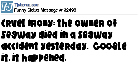 X Cruel irony: the owner of Segway died in a Segway accident yesterday. Google it, it happened.