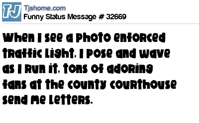 X When I see a photo enforced traffic light, I pose and wave as I run it, tons of adoring fans at the county courthouse send me letters.