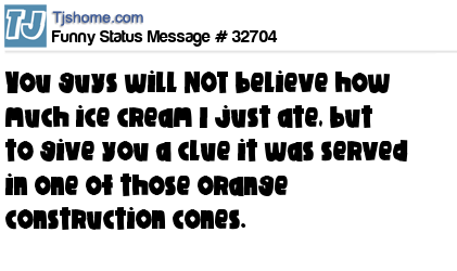X You guys will NOT believe how much ice cream I just ate, but to give you a clue it was served in one of those orange construction cones.